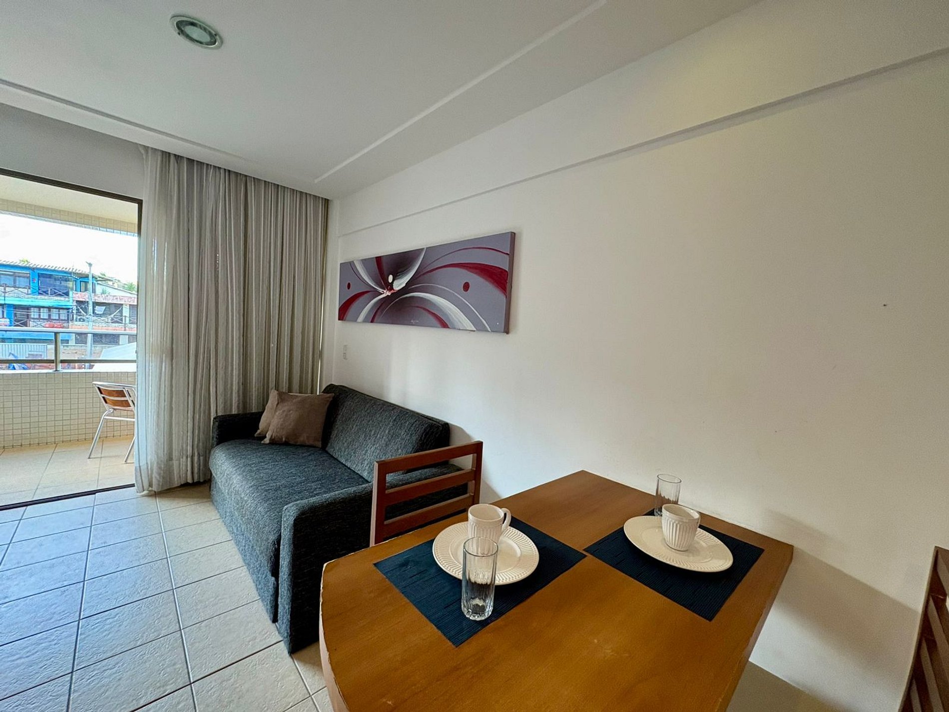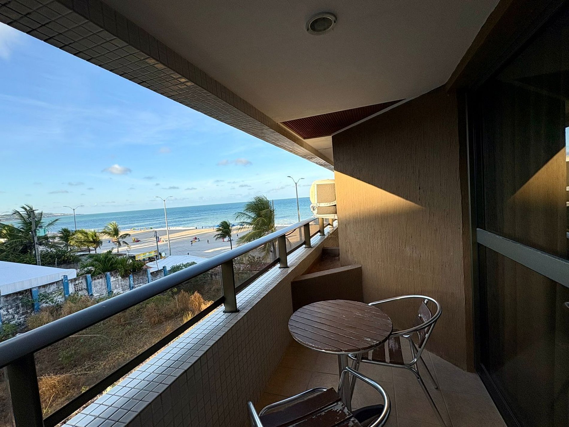 O que torna esse espaço especial é a vista incrível para o mar de Ponta Negra, que pode ser apreciada diretamente da varanda — um convite para relaxar e aproveitar o clima de Natal.