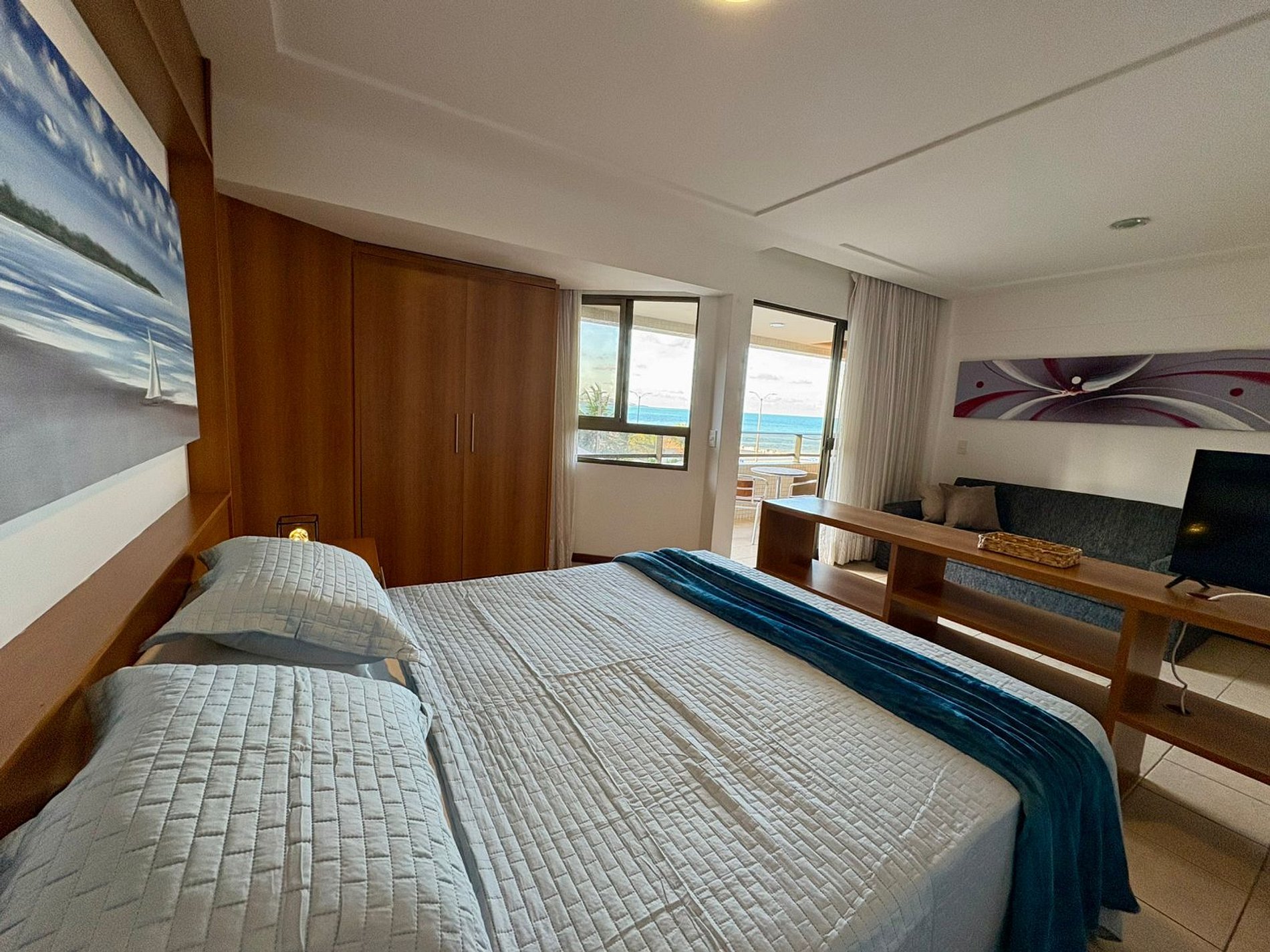 Além disso, o flat combina conforto e praticidade, com cozinha equipada, quarto climatizado e uma decoração leve e acolhedora, inspirada na praia. A localização é outro diferencial: em frente à orla, próximo aos melhores restaurantes e pontos turísticos da cidade.