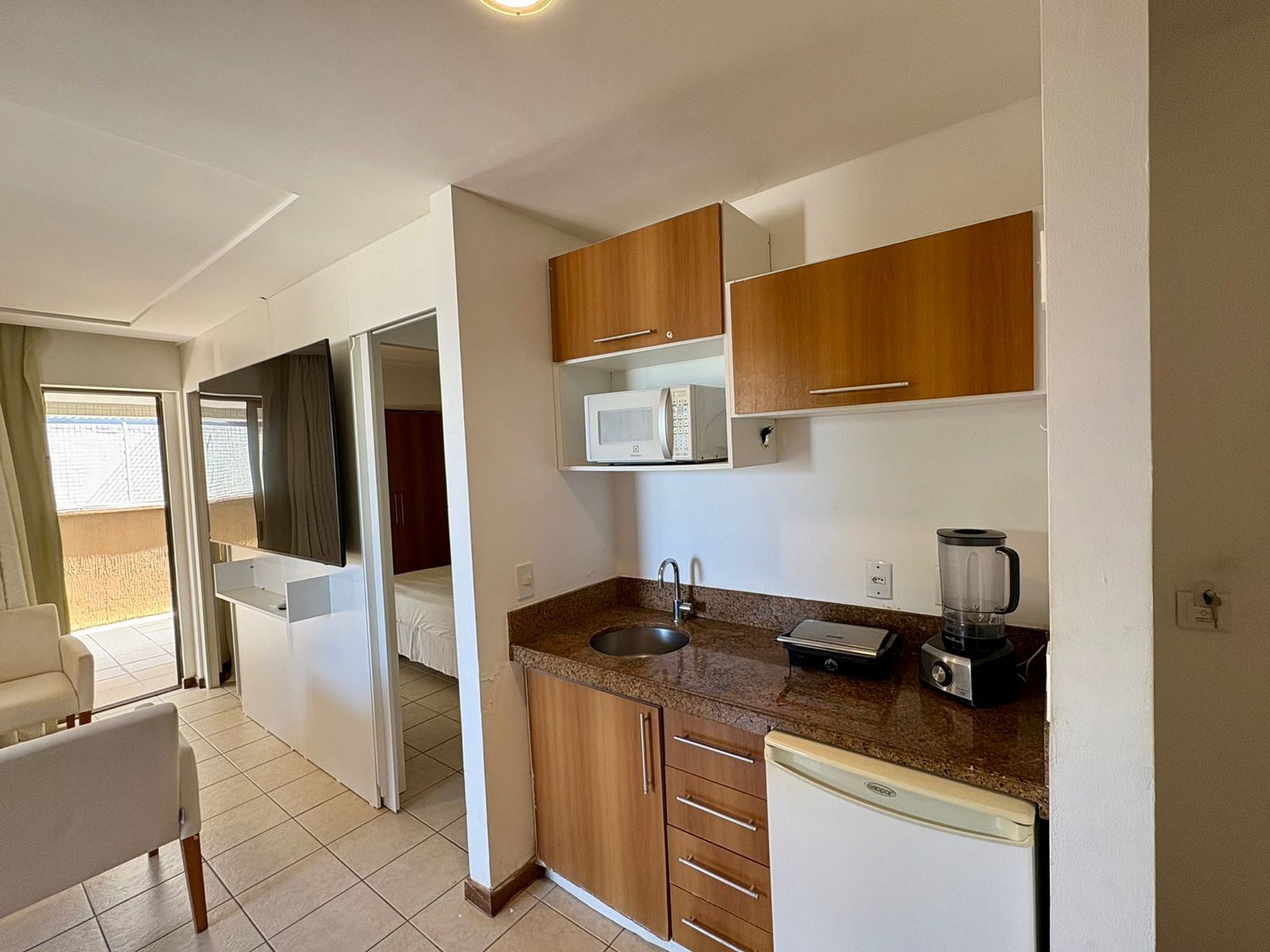 Este studio no MoviHosts Mirador foi pensado para oferecer conforto, praticidade e uma estadia tranquila. O ambiente é bem distribuído, climatizado e conta com uma cozinha compacta equipada, ideal para pequenas refeições, além de cama confortável, enxoval completo e banheiro privativo.