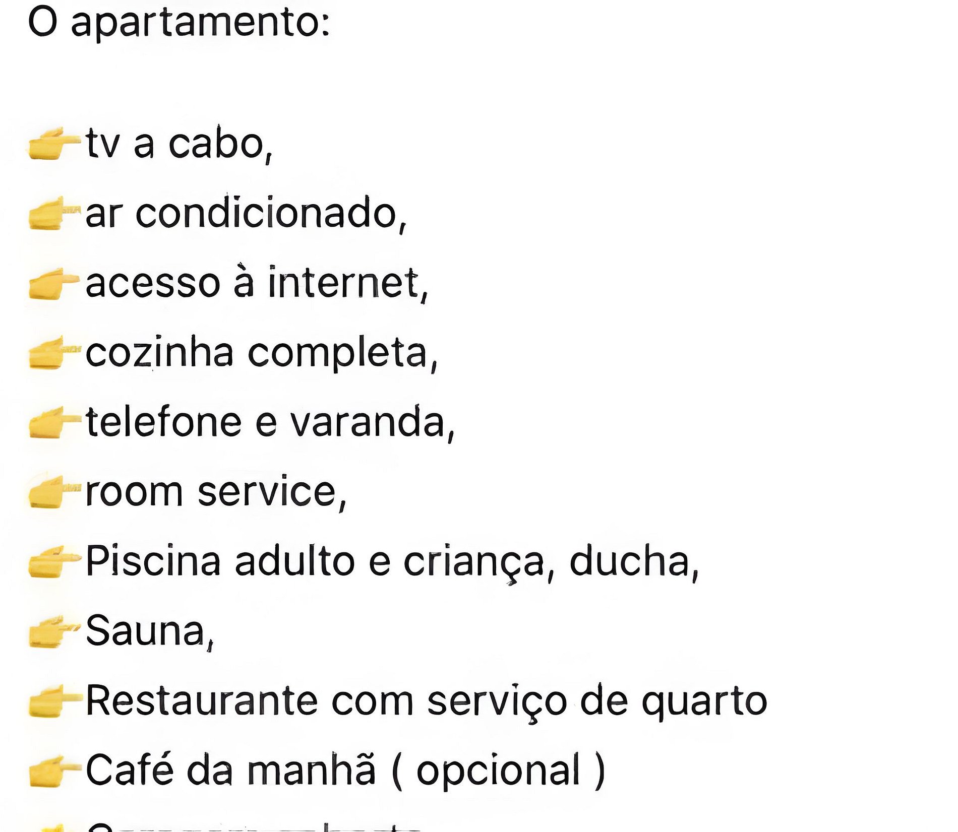 1. Chegando e partindo. . Horário de check-in: a partir das 14h. . Horário de check-out: até às 11h. . Ao chegar e ao partir, sempre dirija-se à recepção. 2. Refeições, bebidas e alimentos não inclusos na tarifa. . O Flat dispõe de cozinha completa . Não é permitido fazer frituras. . O condomínio dispõe de restaurante que serve café da manhã e outras refeições (pagamentos diretamente ao restaurante). 3. O Flat será disponibilizado limpo e com enxoval (conjunto de cama e toalhas). . O enxoval será compatível com a quantidade de hóspedes informada na reserva. . Serviço de limpeza poderá ser solicitado na recepção. R$ 35,00 (é cobrado por troca de enxoval), por cada solicitação. Pagamento por transferência bancária. . Não é permitido levar as toalhas à praia ou à piscina, pois são de uso exclusivo do flat, nem utilizar as tolhas de corpo e rosto como pano de chão, o uso inadequado desses itens ocasionará uma multa de R$ 100,00 por peça danificada.. . Protetores solares mancham permanentemente o enxoval, por isso, solicito encarecidamente e gentilmente que, após uso de protetores, tomem banho antes de usar o enxoval. 4. Serviços inclusos: água, energia elétrica, internet wi-fi no apartamento e nas áreas comuns do condomínio, elevador, garagem, recepção 24h e acesso às áreas comuns. 5. Não é permitido exceder a quantidade de hóspedes informada na reserva. 6. É terminantemente proibido fumar dentro do apartamento, MULTA R$ 250,00. Caso seja fumante pergunte na recepção a área que é permitida para o uso. *Ao classificar, observe que as áreas comuns do edifício, bem como os serviços prestados pelo condomínio estão fora do meu controle como anfitrião (sinta-se livre para encaminhar qualquer solicitação ou recomendação para a recepção do edifício diretamente através de sua caixa de sugestões).*